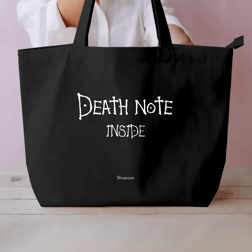 Death Note Inside Tote Bag comes with a zippered closure, two inner pockets, a Key holder, and a zippered inner pocket for easy organization.