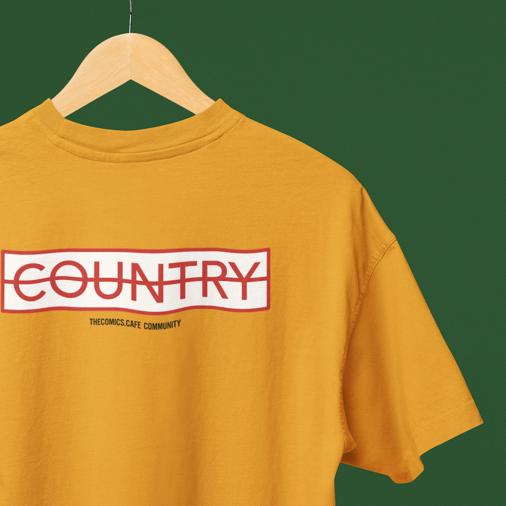 An oversized yellow T-shirt with a striking red country motif set on a clean white background, inspired by Sakamoto’s iconic look in the manga/anime. Designed as a subtle yet stylish way to weave anime culture into your everyday wear.